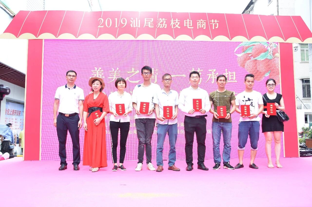 商家订购平台和物流收货点 汕尾荔枝“代言人”  汕尾荔枝历史悠久、文化底蕴深厚、品质优、品种多等特点,启动仪式上,汕尾荔枝代言人宣传片全新发布,向世界展示汕尾荔枝,加深了外界对汕尾荔枝的了解。为更大范围地扩大“汕尾荔枝”品牌影响力,主办方特别从全市各地遴选十多名各领域的市民朋友,共同为汕尾荔枝代言。 颁发荔枝代言人证书