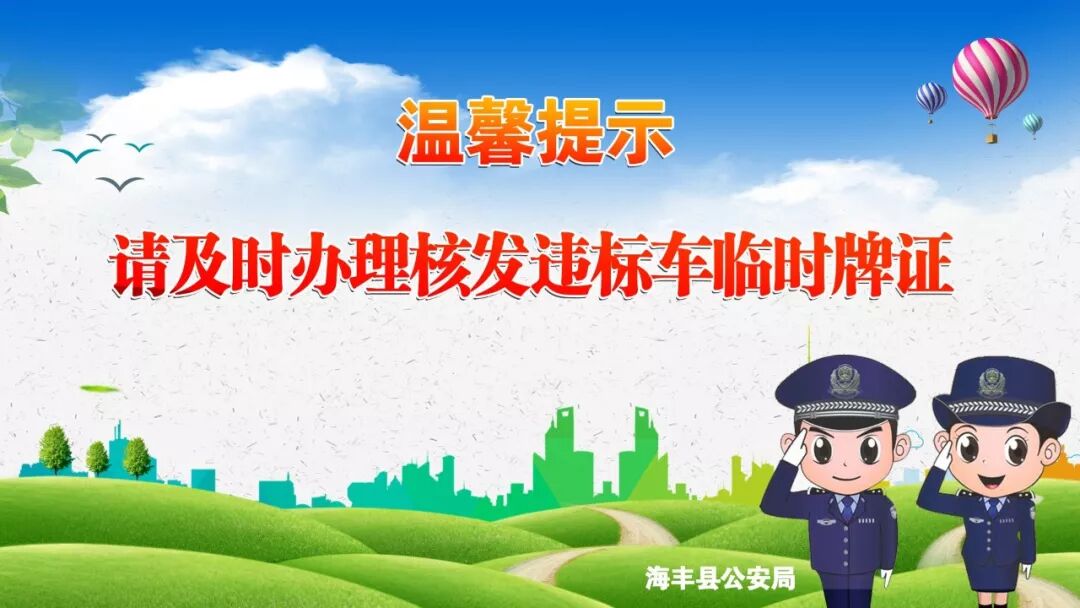 为解决非本县户籍人员违标车申请登记核发临时牌证的问题,根据《海丰县人民政府关于加强摩托车和电动自行车管理的公告》(海府公[2019]13号)的规定,现将有关事项公告如下: