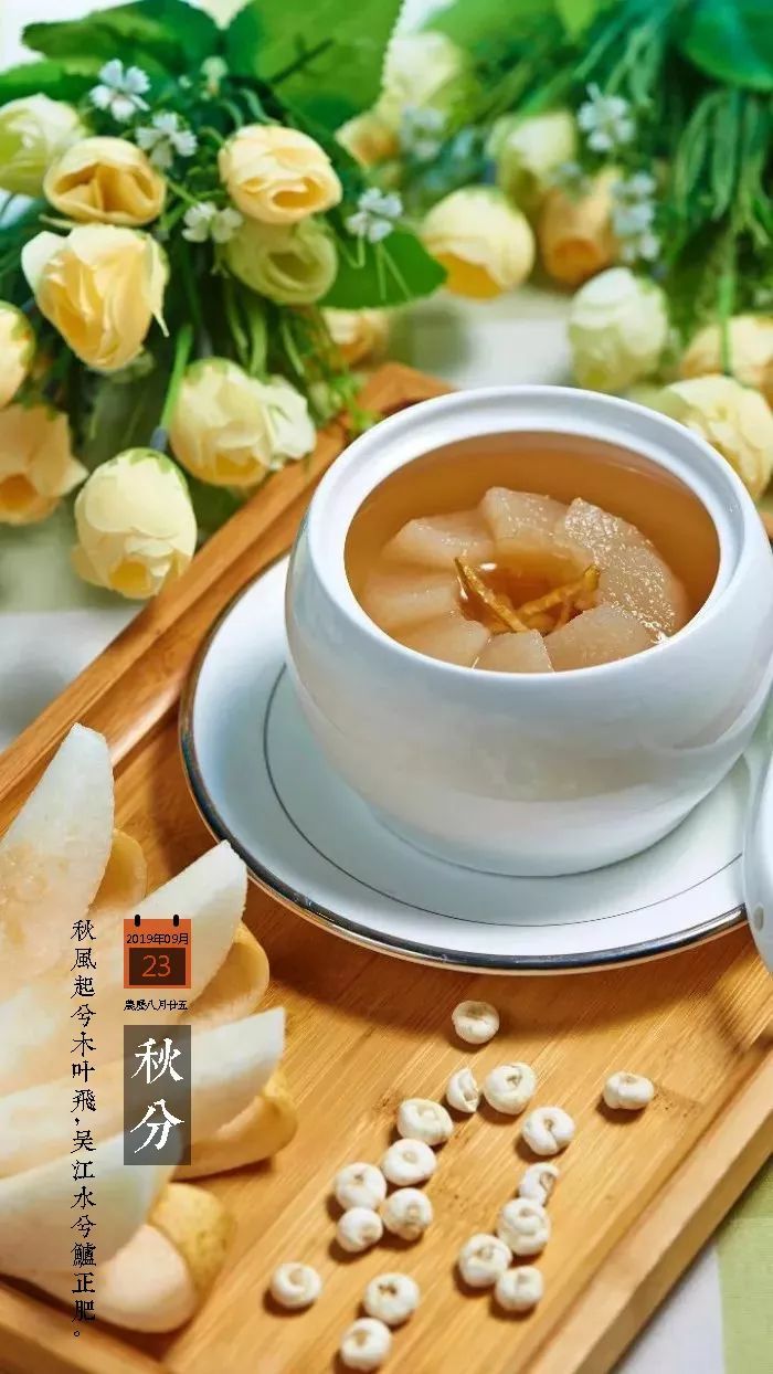 3、秋干物燥,多吃润肺食物 秋分属秋燥,要多吃一些清润、温润的食物,比如芝麻、核桃、糯米等。此外,藕、秋梨、柑橘、山楂、百合、银耳等都是防燥养阴的调养佳品。